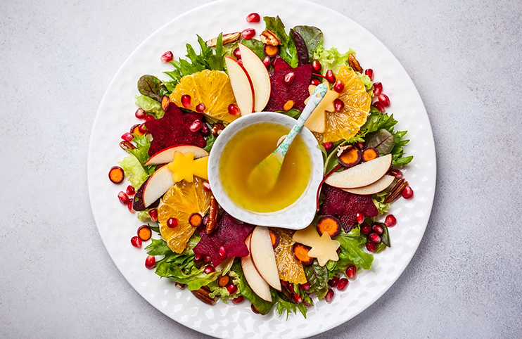 Postup: Červenou řepu a jablka nakrájejte, pokapejte medem, přidejte ořechy a upečte.